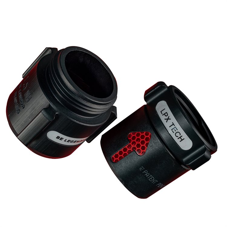 Inicio> Productos> Mangueras> Acoples> Acoples Mertex Wayout®> Acople LPX Wayout de aluminio anodizado negro de 2.0 x 15/16" NPSH, con flechas rojas (juego)